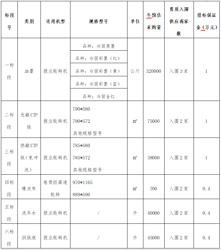 3.1主要内容:2026年四川日报报业集团印刷辅料(含油墨、光敏CTP版、热敏CTP版(免冲洗)、橡皮布、洗车水、润版液)采购。